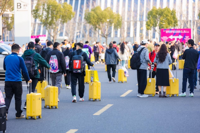领物完毕后,这道“小黄箱风景线”从饱览中心延伸至整座城市——地铁、高铁、机场……满眼都是拖着黄色拉杆箱的跑者。一只只拉杆箱,装的不只是物资,更是跑者们的等待与典礼感,也让无锡这座城市的赛前气氛提早欢腾。